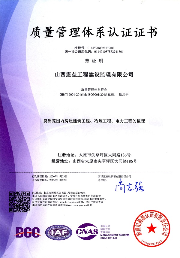 山西震益工程建設監(jiān)理有限公司【原太原鋼鐵(集團)工程建設監(jiān)理有限公司】成立于 1998年4月,注冊資金 600 萬元,是******批準的具有甲級執(zhí)業(yè)資質的綜合性工程咨詢服務企業(yè),具有冶煉工程、電力工程、礦山工程、房屋建筑工程、市政公用工程等5個工程監(jiān)理甲級資質和設備監(jiān)理甲級資質。主要業(yè)務涉及冶金、房屋建筑、礦山、電力、市政、機械、環(huán)保等領域的工程建設監(jiān)理、設備監(jiān)理、工程咨詢、造價咨詢、檢測試驗等。公司建立了質量ISO9001:2015標準、環(huán)境ISO14001:2015標準、職業(yè)健康******GB/T28001-2011 idt OHSAS 1800:2007標準 “三標一體”管理體系,是中國設備監(jiān)理協(xié)會常務理事、中國冶金建設監(jiān)理協(xié)會常務理事和山西省監(jiān)理協(xié)會副會長單位。